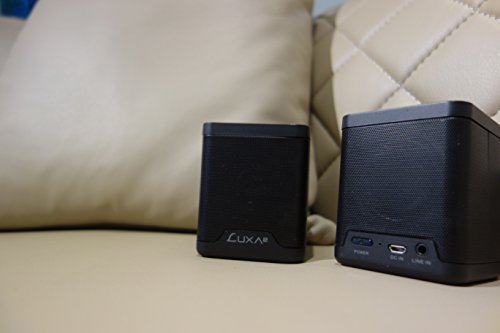 LUXA2 Groovy Duo speakers:Luxa2 Groovy Duo mixes hi-tech with hi-fashionistic appeal that ultimately connects you and all your audio experiences. The dynamic dual pairing mode of the Groovy Duo and increase your audio output from 3Watts to 6Watts for instant mono to stereo play. Capacity: 900mAh / 3.7V Li-Polymer Input: 5V0.3A Micro USBAudio output: 3W+3W(RMS)Playing Time: Up to 8~10 hours Charging time: 3 hrs Connectivity: Bluetooth CSR V2.1+EDR; A2DP (Audio Sink only), AVRCP (Remote Control only)Wireless range: 10meters/33ft (open area)Warranty: 1 year